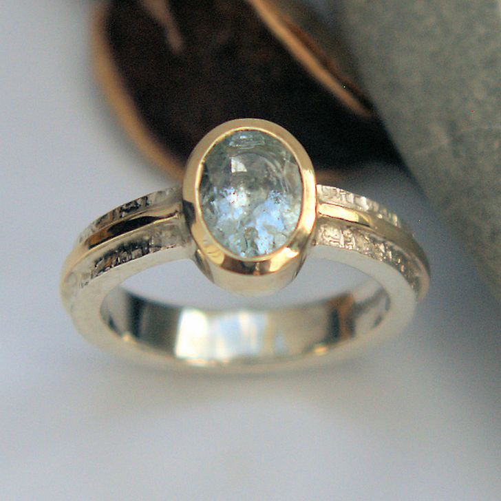Bague en argent et or ornée d'une aigue-marine ovale