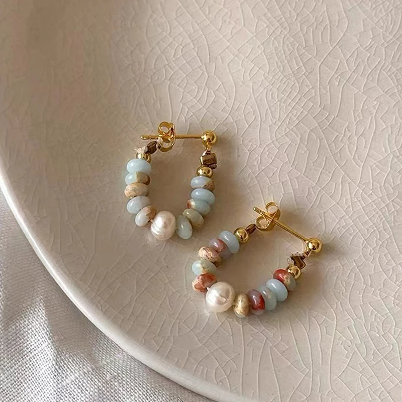 Boucles d'oreilles avec perles et pierres de couleur élégantes