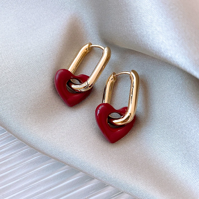 Boucles d'oreilles élégantes en forme de cœur baroque rouge